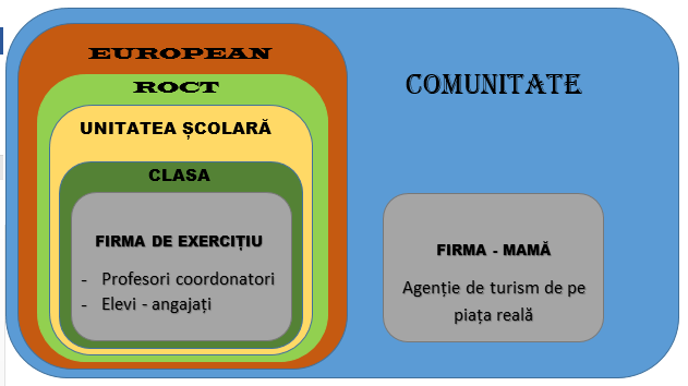 Firma mamă | • este o societate comercială de profil (agenție de turism), cu activitate pe piața reală, care sprijină firma de exercițiu cu: – informații de specialitate legate de organizarea firmei și de gama de servicii oferite – documente suport pentru derularea proceselor și activităților într-un mediu de afaceri real